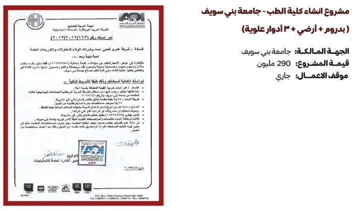 We seek to be a leading company specialized in contracting works, which enjoys a leading position in the markets and provides innovative solutions for various projects.